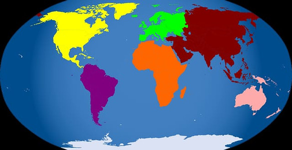 Sappiamo pure che, per motivi storici, culturali e geografici, queste masse continentali vengono ulteriormente suddivise nelle diverse "parti del mondo" (o "continenti"): la prima massa viene differenziata in AFRICA, ASIA ed EUROPA; l'America viene abitualmente divisa in NORDAMERICA e SUDAMERICA; l'Australia, con le numerosissime isole che le appartengono, prende il nome di OCEANIA.